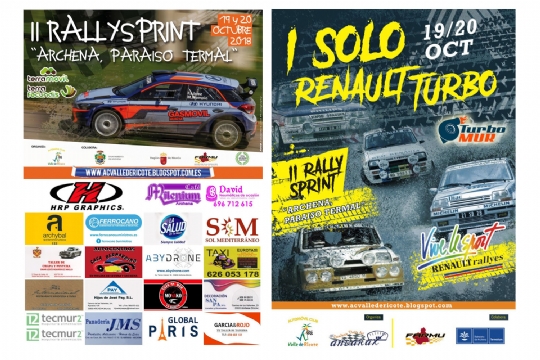 El Campeonato de Rallysprint de la Región de Murcia regresa por segunda temporada consecutiva a la localidad de Archena para disputar una nueva edición del Rallysprint Archena - Paraiso Termal. Además de esta prueba, se celebrará de forma conjunta la primera edición del Solo Renault Turbo, una cita que espera reunir a los mejores Renault Turbo de toda España en un fin de semana de competición de auténtico lujo para nuestra Región. Toda la información en la web oficial del Automóvil Club Valle de Ricote.