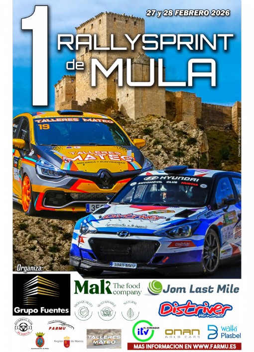 El sábado 28 de febrero tendrá lugar el I Rallysprint de Mula, TC en la interesante carretera C-6 Niño de Mula - Bullas por interior, 9,4 Km para disfrutar. Formato A1-B1-A2-B2 en los 2 sentidos. Salida a las 10:00h