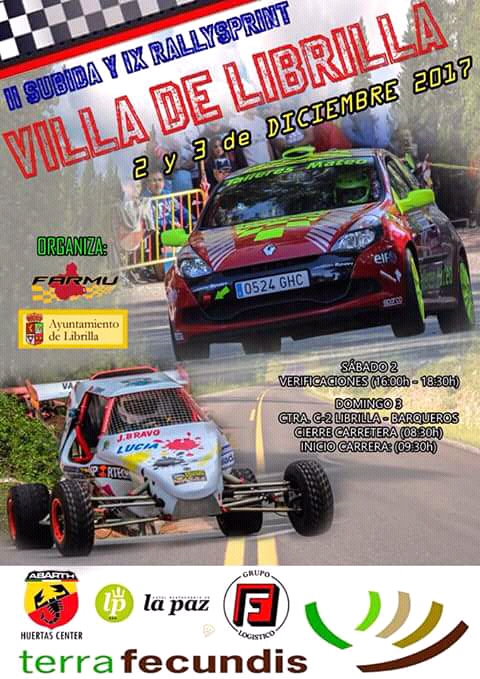 El próximo 3 de Diciembre en el municipio de Librilla se celebrará la II Subida y el IX Rallysprint de Librilla ,de mano de FARMU, prueba que se realizó por última vez en la temporada 2015 y que decidirá el campeonato murciano de esta temporada.